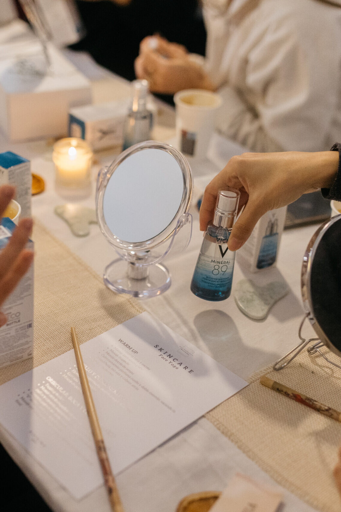 Después de entrenar, qué mejor opción que bajar revoluciones con una sesión de Skincare. Música suave, tu bebida, tu kit de productos y los mejores consejos de como drenar y masajear el rostro. Utilizaremos el IMPERIAL OIL, un best Seller de la marca, para, a través de la técnica Gua Sha, sumergirnos en una auténtica burbuja de desconexión y bienestar.